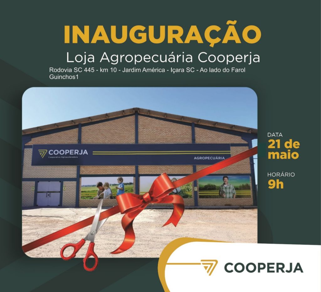Está marcado para o dia 21 de maio, às 9 horas, a Inauguração da 12ª Loja Agropecuária Cooperja, que tem matriz em Jacinto Machado.