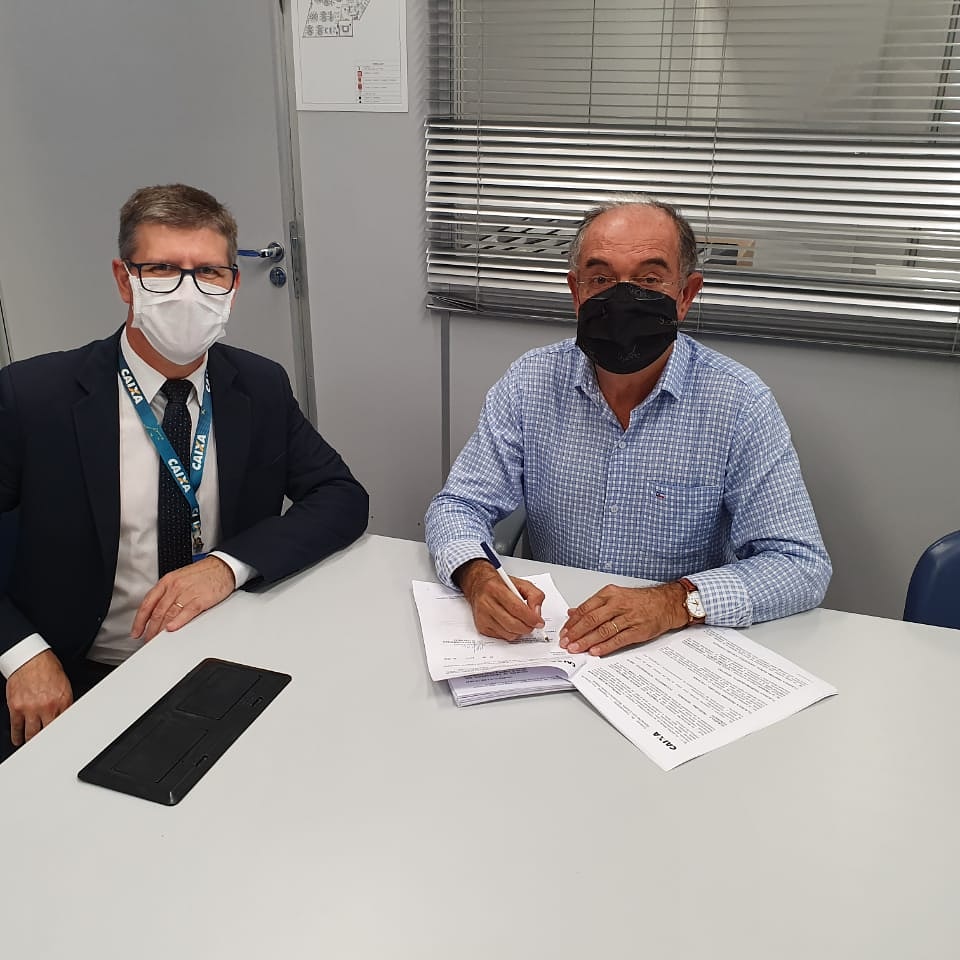 O prefeito de Balneário Arroio do Silva, Juscelino da Silva Guimarães, o Mineiro, assinou na tarde desta segunda-feira, 22 de junho, o contrato de financiamento com a Caixa Federal, agência regional de Criciúma, para obtenção de recursos da ordem de R$ 5 milhões de reais para a implementação do projeto AVANÇAR CIDADES – Mobilidade Urbana.
