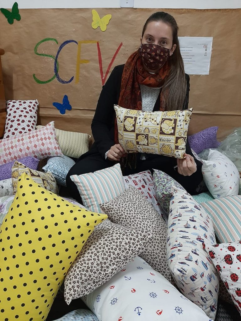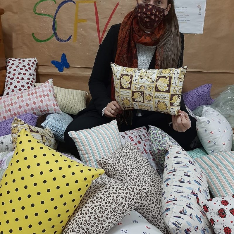 No decorrer destes meses em que os usuários estão sendo atendidos em casa, uma das atividades trabalhadas abordou de maneira lúdica o Dia do Abraço. Em meio a Pandemia em que estamos evitando o contato físico, a Oficina de Artes e Valores voltou no tempo e trabalhou o sistema de cartinha com as crianças. Cada usuário fez uma cartinha que foi entregue para monitora que ficou responsável de entregar ao destinatário. No dia da entrega além das cartas, cada criança recebeu junto uma almofada (produzida pela monitora do SCFV do CRAS) fazendo referência ao abraço dos amigos do SCFV. Uma atividade simples que trouxe afeto e exprimiu muitos sorrisos como forma de agradecimento.