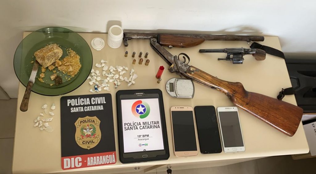 Uma ação conjunta entre a Polícia Militar e a Polícia Civil na manhã desta sexta-feira, dia 26, fez apreensões e prendeu um casal de integrantes de uma facção criminosa em Araranguá.A Guarnição do Pelotão de Patrulhamento Tático juntamente com a Guarnição do Canil de Criciúma, fez a entrada no imóvel para cumprir um mandado de busca e apreensão na casa. Dentro da residência estavam um homem, quatro mulheres e quatro crianças. Durante as buscas, com o apoio do cão farejador, foram encontradas 125,2 gramas de substância semelhante à crack e 1,3 gramas de substância semelhante a maconha, que a dona da casa alegou serem suas. Uma balança de precisão e uma munição calibre .45 também foram encontradas. O casal dono da casa foi detido e levado para a Central de Polícia juntamente com as drogas, a munição, a balança e também e aparelho celular da mulher, que foi apreendido.