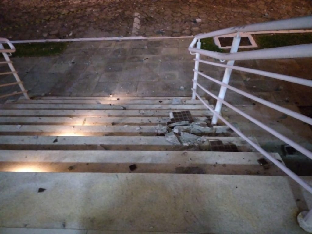 Por volta das 22 horas da última quarta-feira, dia 4, o Corpo de Bombeiros foi chamado na avenida Padre Antônio Luis Dias, Centro de Araranguá, por causa da queda de materiais da fachada de um prédio. Segundo a guarnição, o reboco da parte frontal no sexto andar do edifício havia caído e causado danos na escada de acesso ao edifício e também no corrimão da escada. De acordo com o síndico, ninguém se feriu e uma avaliação do engenheiro responsável estava sendo aguardada.