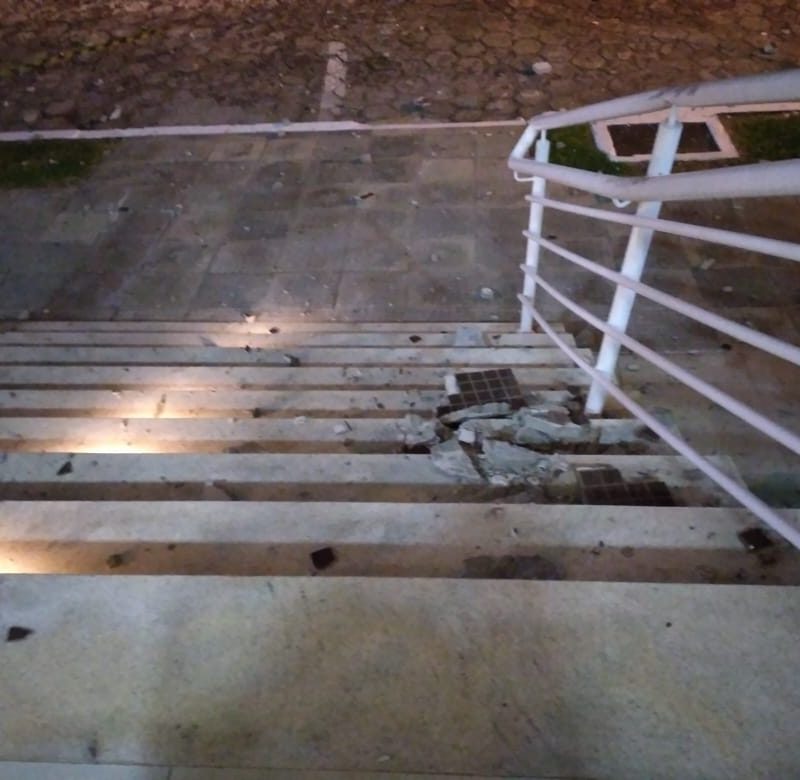 Reboco de prédio cai e causa danos em escada em Araranguá