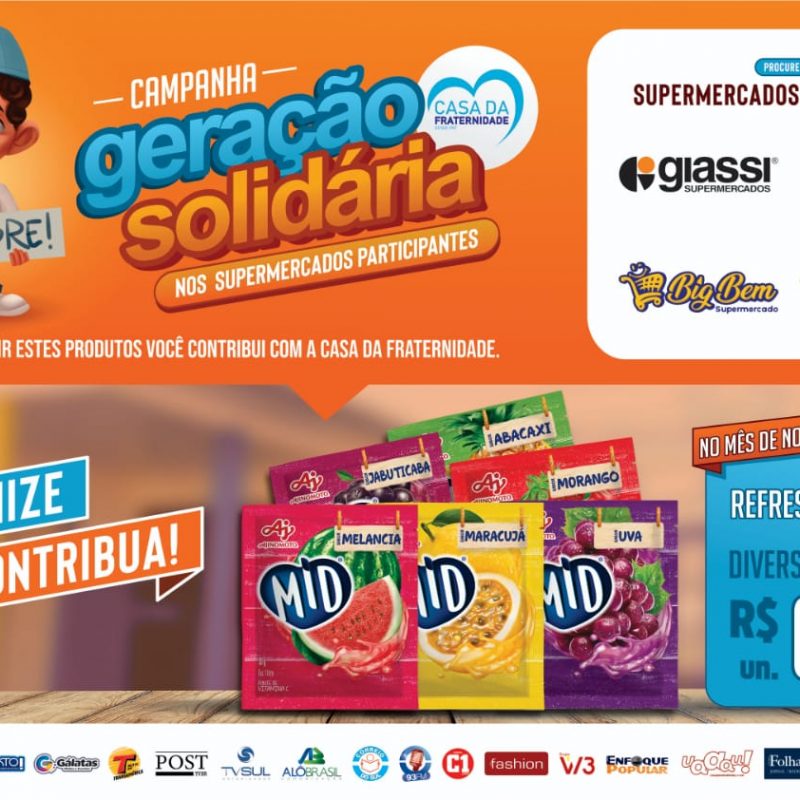 A comercialização de 36.740 unidades do macarrão instantâneo Renata nos supermercados Giassi (Araranguá e Sombrio), Big Bem, Sete Supermercados e Supermercado das Frutas gerou mais R$ 15 mil para a instituição beneficente Casa da Fraternidade. Em novembro, quem adquirir nestes supermercados o refresco MID, por apenas R$ 0,89, contribuirá com a entidade. A ação faz parte do projeto Geração Solidária.