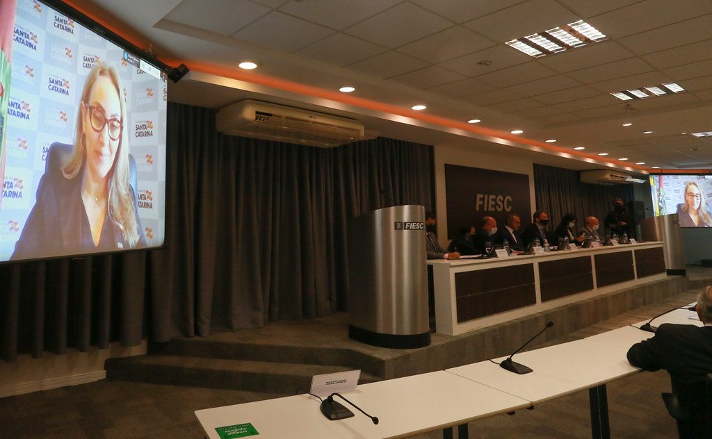 A aproximação econômica e diplomática com outros países diante dos desafios impostos pela pandemia foi um dos temas de uma reunião na Federação das Indústrias do Estado de Santa Catarina, em Florianópolis, na manhã desta quinta-feira, 19. Em isolamento por causa da Covid-19, a governadora Daniela Reinehr participou do encontro via webconferência e cumprimentou o embaixador da Argentina no Brasil, Daniel Scioli, pela já consolidada relação econômica com o país. No encontro, as associações empresariais presentes buscaram soluções junto ao embaixador para fortalecer o vínculo comercial entre Santa Catarina e o país vizinho.