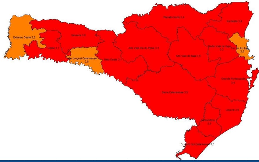 Hotéis e pousadas localizados na Amesc, agora, só poderão preencher 30% da capacidade do estabelecimento, conforme a portaria 743. Já as casas noturnas estão proibidas de funcionar, assim como cinemas e teatros. Eventos sociais como congressos, seminários e festas, também estão proibidas, de acordo com portaria divulgada em 18 de setembro. Também ficam proibidos de funcionar nas regiões classificadas em vermelho no mapa os parques aquáticos e competições esportivas.