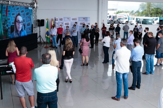 A lista de municípios beneficiados com ônibus neste lote de entregas inclui dentre outros, Meleiro e Turvo.
