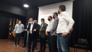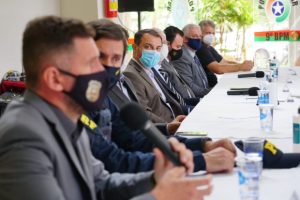 O governador Carlos Moisés participou nesta quinta-feira, 9, de entrevista coletiva para atualização das investigações sobre o assalto a uma agência bancária que assustou moradores de Criciúma, na madrugada do dia 1º. Até agora, 14 pessoas envolvidas na ação foram presas. O governador reafirmou que o fato não combina com