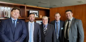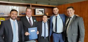 A agenda, em Brasília, de seis prefeitos da Amesc – Elisandro Pereira Machado, o Fanica, de Praia Grande (PP); Moacir Francisco Teixeira de São João do Sul (MDB); Almides Roberg da Rosa de Santa Rosa do Sul (PSDB); Paulo Della Vechia de Ermo (MDB); Sandro Cirimbelli de Turvo (PP) e Gislane Dias da Cunha de Sombrio (MDB) – iniciou com o secretário adjunto da Secretaria Executiva de Articulação Nacional, Noilton Moraes da Silva.