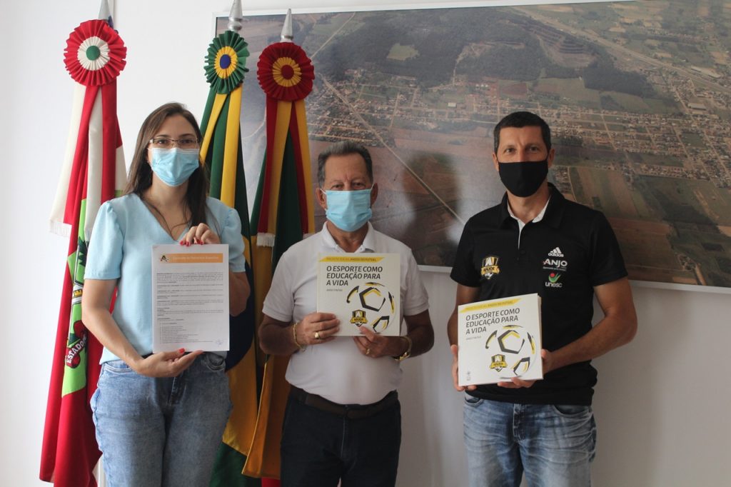 A assinatura da parceria aconteceu na manhã desta terça-feira, dia 09, com a presença do prefeito Anibal Brambila, da secretária de Administração e Finanças, Edilane Rocha Nicoleite, e do Coordenador Técnico do projeto Anjos do Futsal, professor Jean Reis.