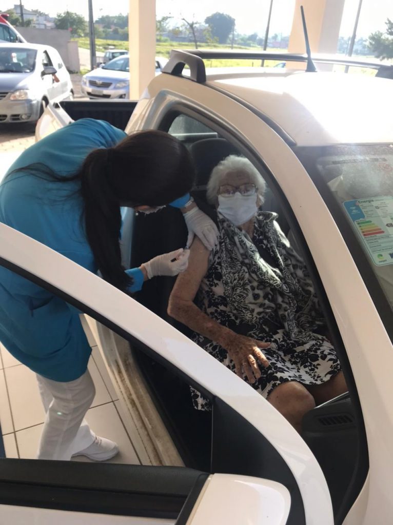 A família de Maria Dal Pont Tonetto, de 95 anos, uma das idosas vacinadas, está emocionada e feliz com este momento, pois dá mais segurança em meio a esta pandemia ela estar imunizada. Para eles, representa mais saúde para comemorar seus 96 anos em junho.