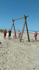 O vereador Sargento Clailton de Oliveira (PSDB), de Balneário Arroio do Silva, fez a doação e junto com um grupo de voluntários, doou 4 balanços, que estão sendo colocados ao longo da praia.