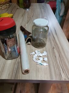 Quando a vítima ingressou na residência, foi possível verificar em um armário duas petecas de cocaína prontas para venda e diante das informações de que o conduzido estava envolvido com o delito de tráfico de drogas, foi verificado o forro da casa e uma cadeira com fundos falsos, sendo localizado aproximadamente 66 (sessenta e seis) petecas de cocaína embaladas para venda, também foi encontrado certa quantia em dinheiro.