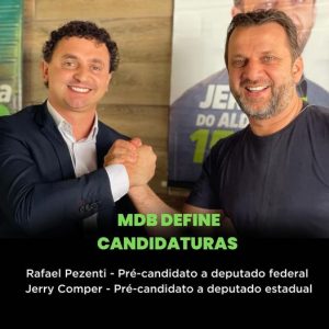O jornalista Rafael Pezenti, de Ituporanga, irá ocupar a vaga de Rogério Peninha Mendonça (MDB). Será o candidato a deputado federal em uma dobradinha com o deputado estadual Jerry Comper (MDB), que foi o substituto do deputado Aldo Schneider, que veio a falecer.