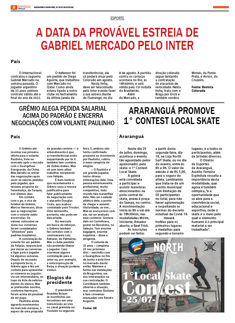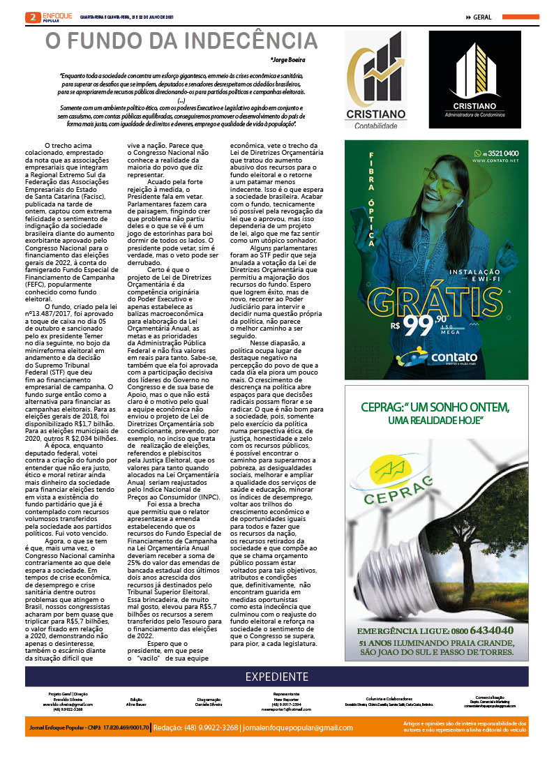 Edição 2496 – 21 e 22-07-2021 / Jornal Enfoque Popular