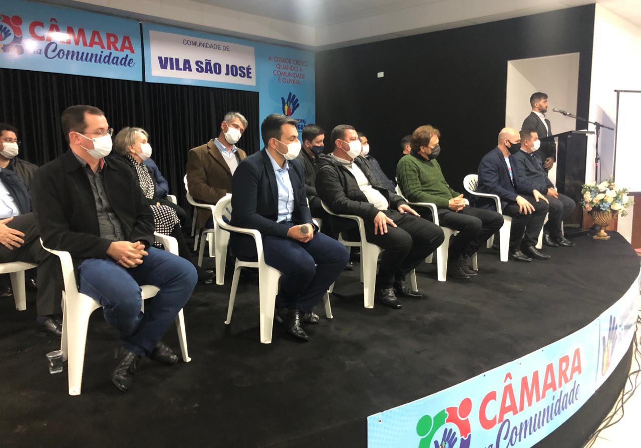 Aconteceu nesta terça-feira, dia 10, a 3° edição do Projeto ‘Câmara na Comunidade’, do Poder Legislativo de Araranguá, desta vez na Vila São José. A proposta da ação é debater com os representantes públicos, prefeito, vice-prefeito e vereadores os problemas do bairro buscando solucioná-los. O anfitrião do evento foi o vereador Jorge Luiz Pereira, o Jorginho e o ato contou com a participação de demais vereadores e do prefeito Cesar Cesa e do vice-prefeito Cristiano da Silva Costa, o Tano.