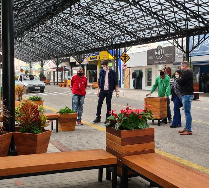 A Prefeitura de Sombrio está nos últimos detalhes para a liberação e entrega definitiva da Rua Coberta, no Calçadão da Avenida Nereu Ramos, no Centro do município, com a etapa de paisagismo, a Prefeita Gislaine Cunha foi acompanhar os trabalhos na manhã desta terça-feira e falou sobre projetos ousados para o turismo municipal após passar a pandemia.