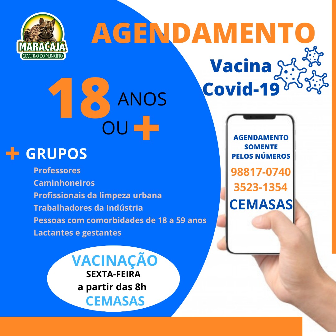 O Governo do Município de Maracajá e o Departamento de Saúde divulgaram que está aberto o agendamento para pessoas com 18 anos ou mais e demais grupos já priorizados anteriormente para receber as vacinas contra a Covid-19.