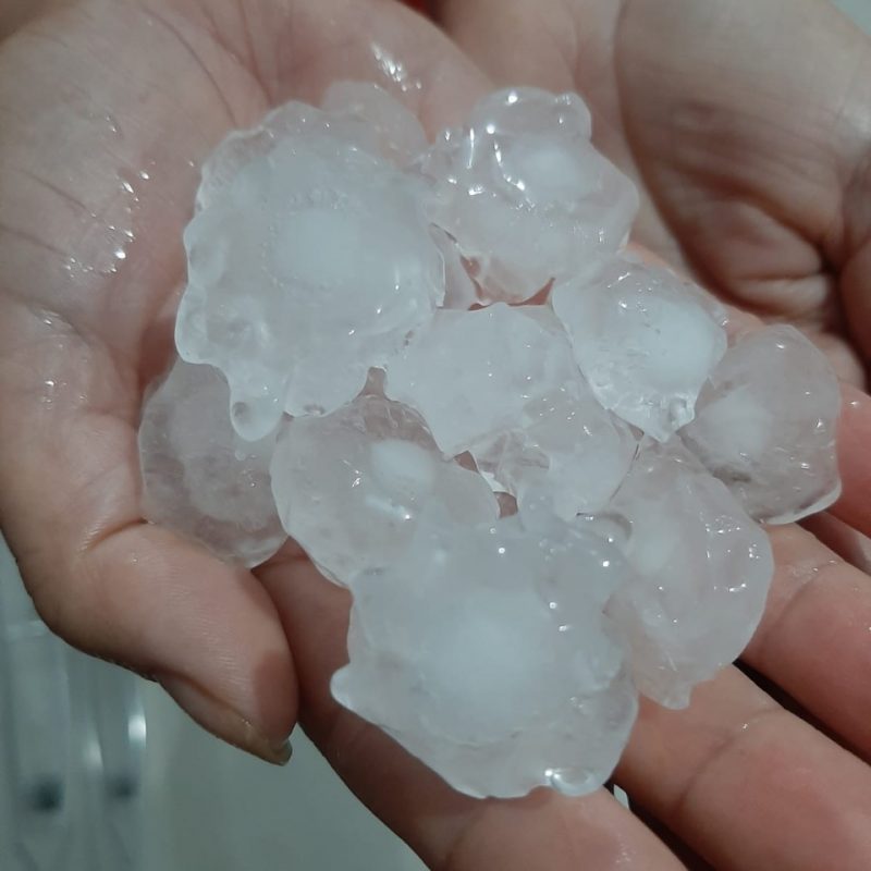 O Coordenador Municipal de Defesa Civil, Rodrigo Batista dos Santos, já acompanha os estragos causados pela tempestade de granizo que abateu nosso município na noite deste domingo. Segundo relatos que chegam, muitas lavouras na região da linha do campo foram atingidas pelas pedras. Nesta segunda-feira, 20, o coordenador vai sair a campo para quantificar os estragos e fazer o relatório para a Defesa Civil Estadual. Nas residências da praia, algumas tiveram seus telhados danificados devido ao tamanho das pedras (semelhantes à bola de ping-pong). O vice-prefeito Jonatã Coelho, que filmou momentos da tempestade ficou admirado com o tamanho das pedras. “Além da chuva de pedras se ouvia um barulho muito forte. Em seguida fortes ventos foram registrados”, disse.
