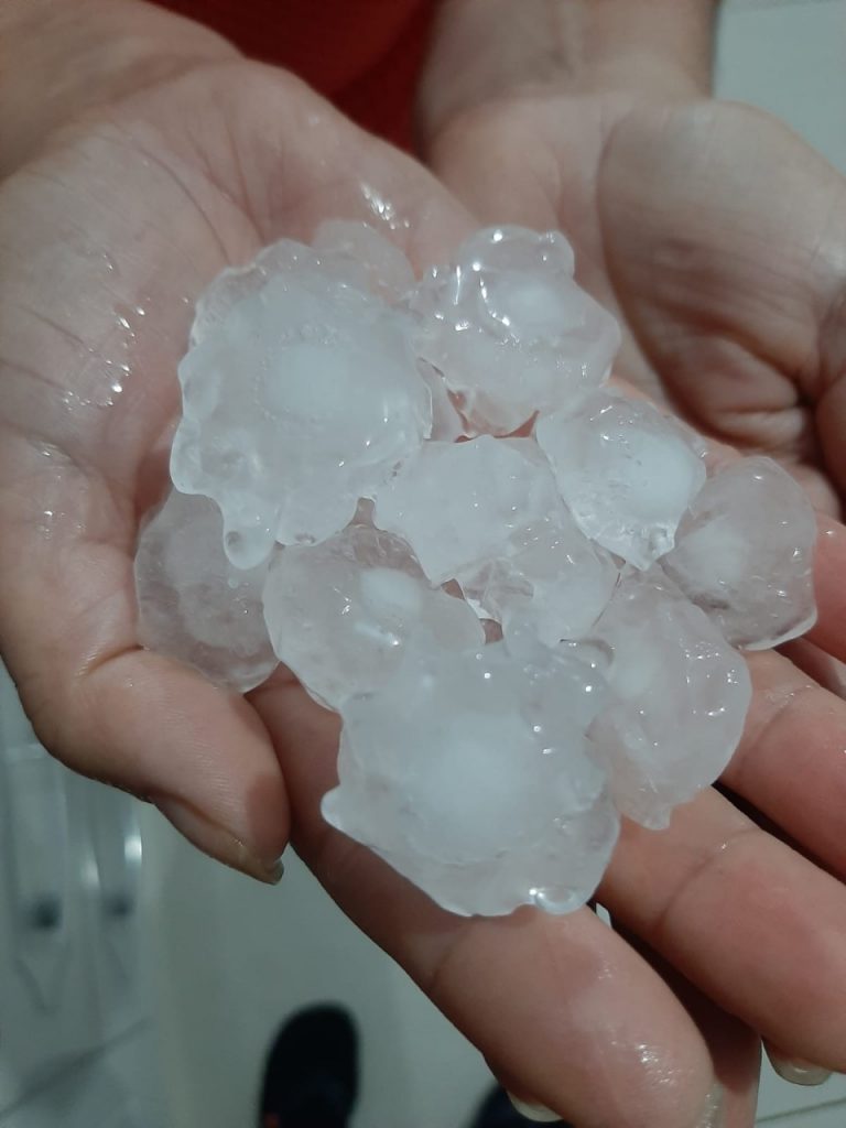 O Coordenador Municipal de Defesa Civil, Rodrigo Batista dos Santos, já acompanha os estragos causados pela tempestade de granizo que abateu nosso município na noite deste domingo. Segundo relatos que chegam, muitas lavouras na região da linha do campo foram atingidas pelas pedras. Nesta segunda-feira, 20, o coordenador vai sair a campo para quantificar os estragos e fazer o relatório para a Defesa Civil Estadual. Nas residências da praia, algumas tiveram seus telhados danificados devido ao tamanho das pedras (semelhantes à bola de ping-pong). O vice-prefeito Jonatã Coelho, que filmou momentos da tempestade ficou admirado com o tamanho das pedras. “Além da chuva de pedras se ouvia um barulho muito forte. Em seguida fortes ventos foram registrados”, disse.
