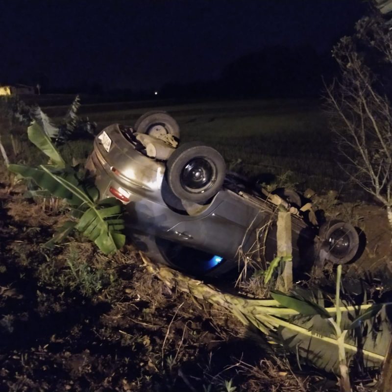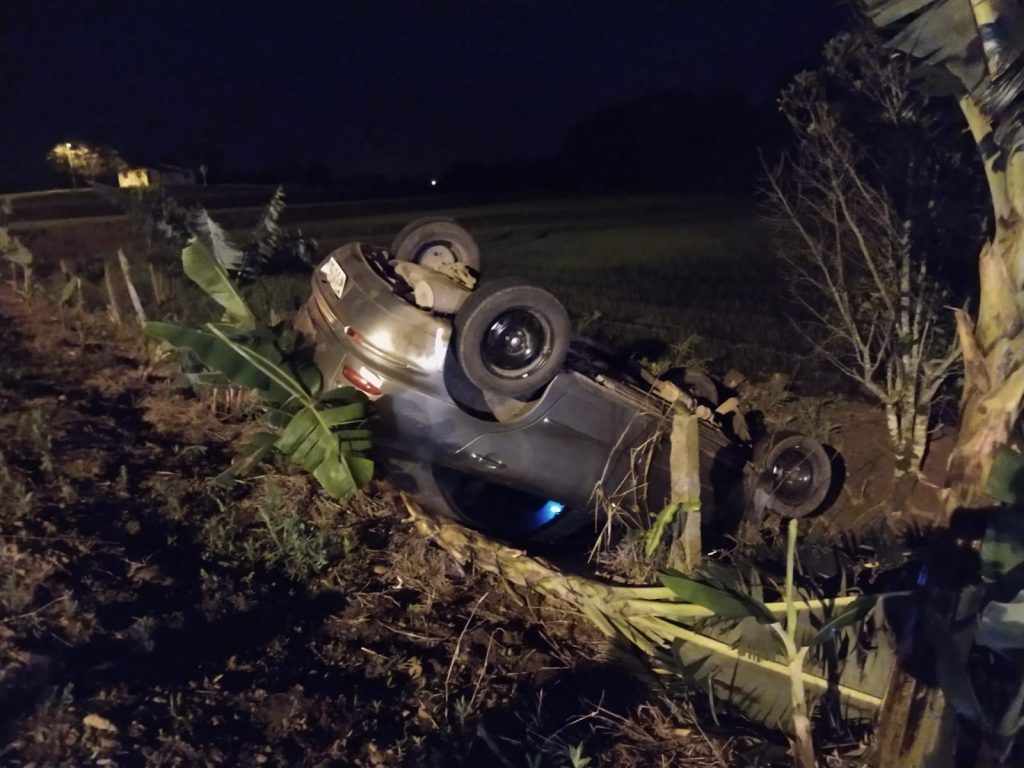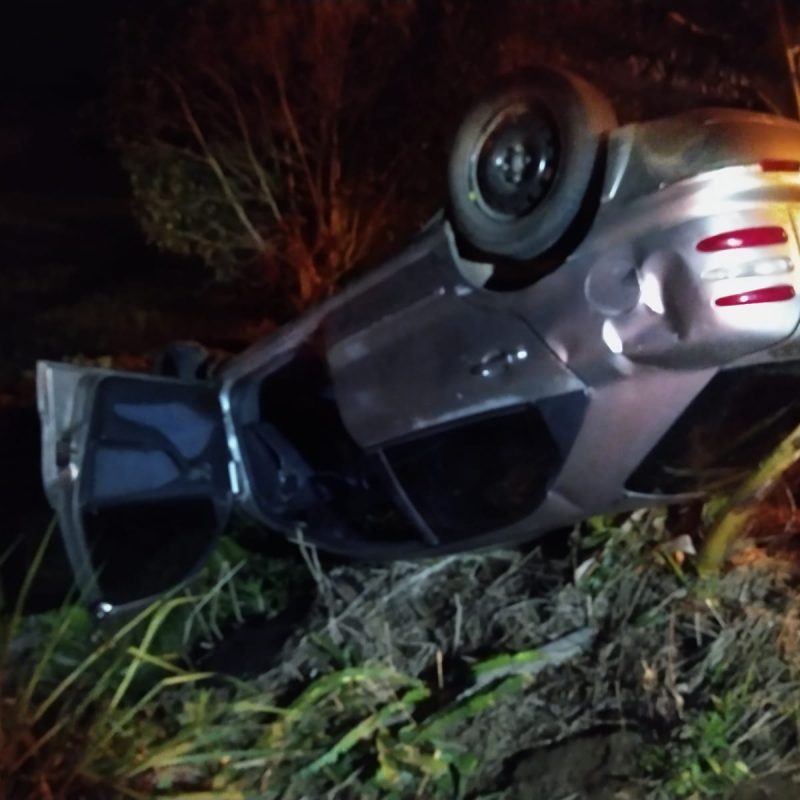 A saída de pista seguida de capotamento aconteceu na SC 447, no bairro Volta Redonda, em Meleiro. O Corpo de Bombeiros e o Samu foram acionados para atender as duas vítimas da ocorrência.