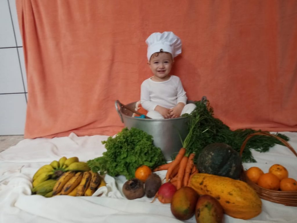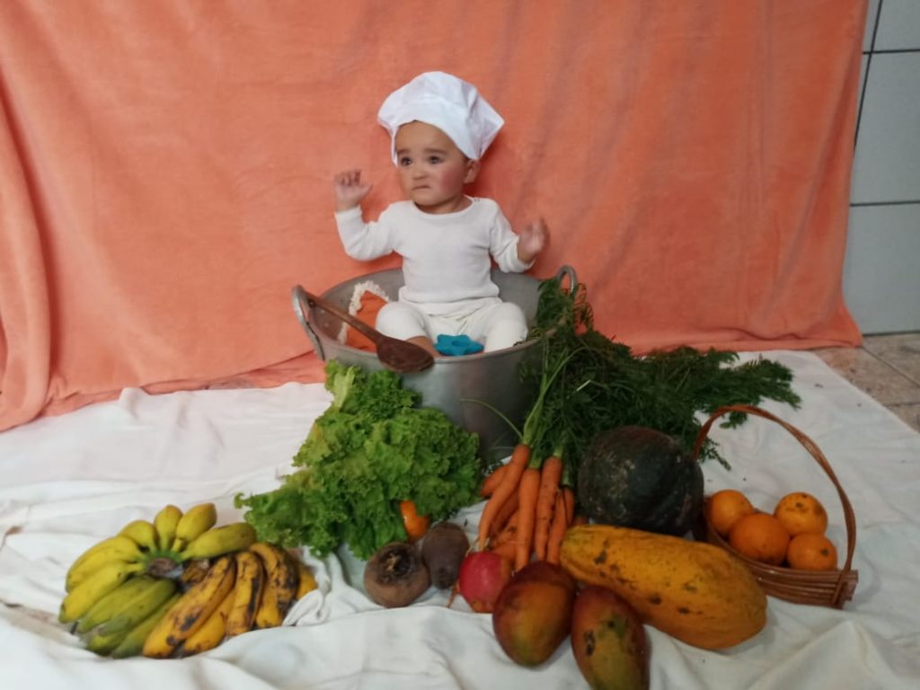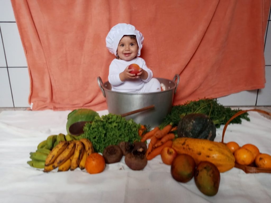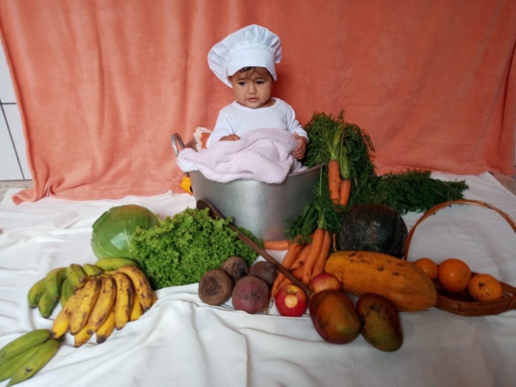 Para incentivar o consumo destes alimentos, as professoras Janaina, Mariana, Eloisa e Rosania, da turma do Berçário I do Centro de Educação Infantil Viver e Crescer, resolveram retratar os pequeninos em meio ao que há de mais saudável e gostoso servido no cardápio. “Aqui na nossa turminha, a introdução destes alimentos é feita de forma gradual, iniciando com frutas variadas e depois com cereais, carnes, legumes, etc.”, explicam.