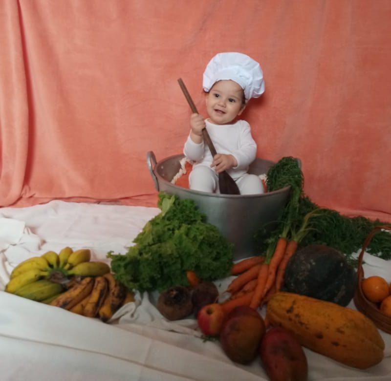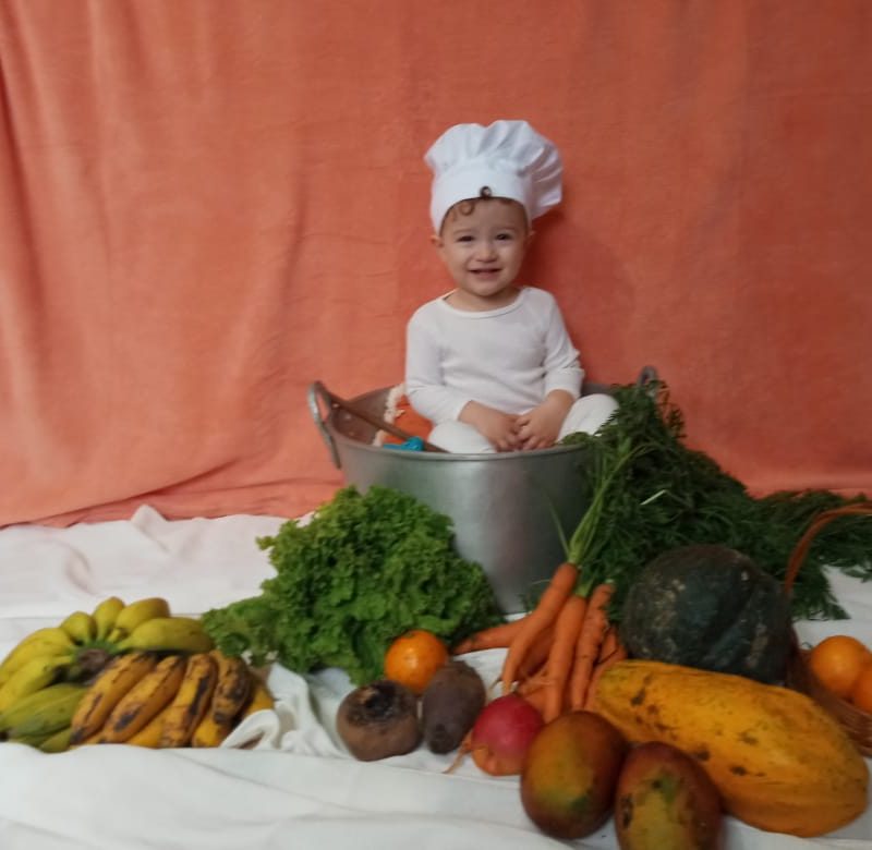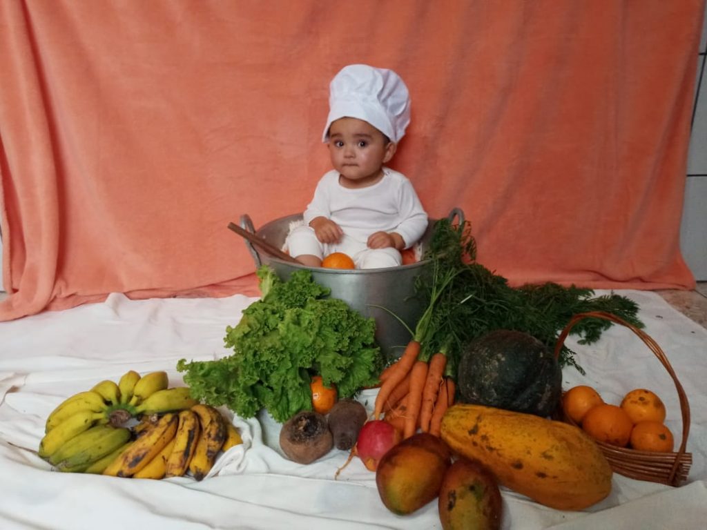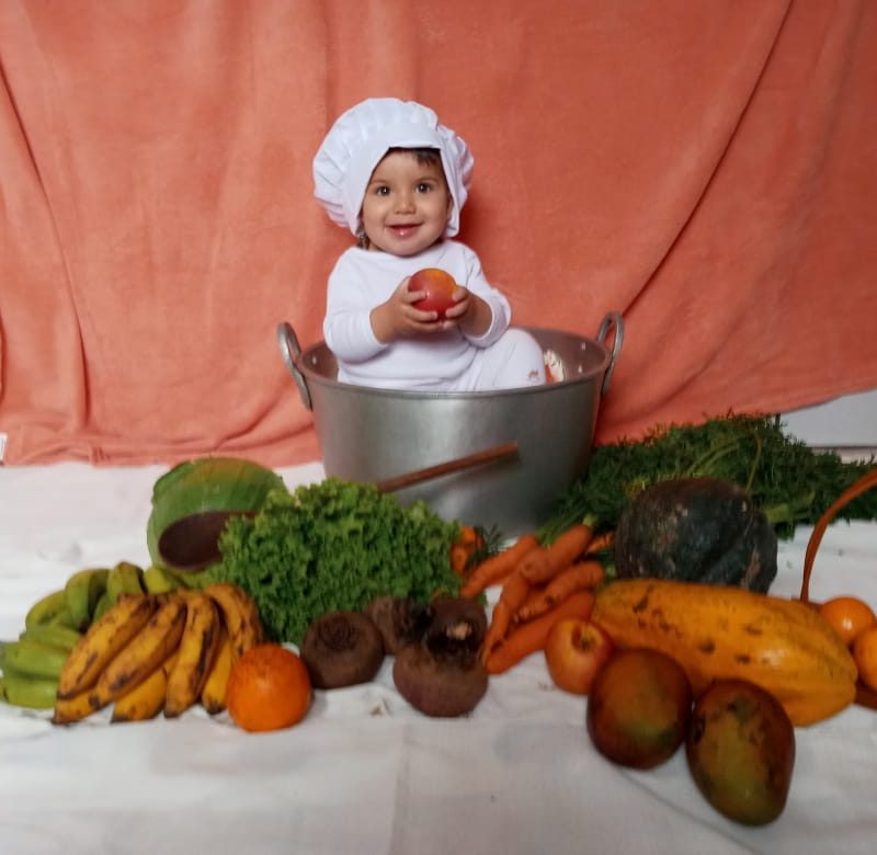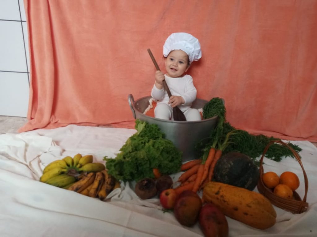 Para incentivar o consumo destes alimentos, as professoras Janaina, Mariana, Eloisa e Rosania, da turma do Berçário I do Centro de Educação Infantil Viver e Crescer, resolveram retratar os pequeninos em meio ao que há de mais saudável e gostoso servido no cardápio. “Aqui na nossa turminha, a introdução destes alimentos é feita de forma gradual, iniciando com frutas variadas e depois com cereais, carnes, legumes, etc.”, explicam.