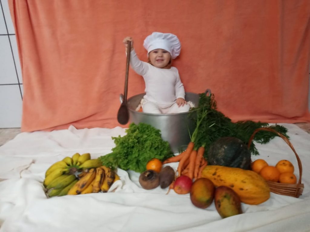Com uma sessão de fotos bem apetitosa, professoras de uma creche de Jacinto Machado estão promovendo uma campanha para incentivar a alimentação saudável.