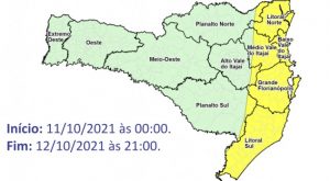Um novo alerta de temporais foi divulgado pela Defesa Civil para o estado. De acordo com o órgão, um sistema de baixa pressão está influenciando o tempo entre segunda e terça-feira, dias 11 e 12. O sistema favorece a formação de áreas de instabilidade que provocam pancadas de chuva com trovoadas e risco de temporais isolados. Enquanto isso, no Litoral a circulação marítima ganha força e mantém chuva persistente e com acumulados significativos. Na região podem haver volumes que, em média, ficam entre 50 e 70 mm. Podem ocorrer episódios com grandes acumulados de chuva em curto espaço de tempo, principalmente entre a noite de segunda-feira e amanhecer de terça, podendo causar alagamentos e transtornos.