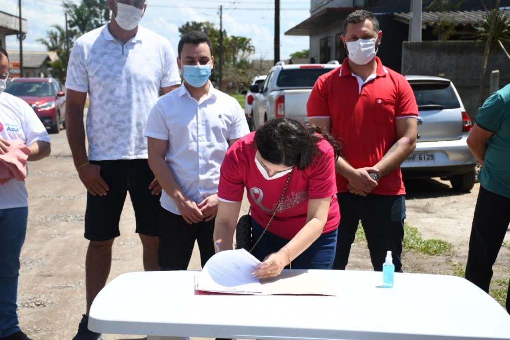 No final da manhã desta quarta-feira, foi assinada a ordem de serviço de pavimentação da rua Álvaro Silveira, rua que faz a divisa entre os bairros Januária e Nova Brasília.