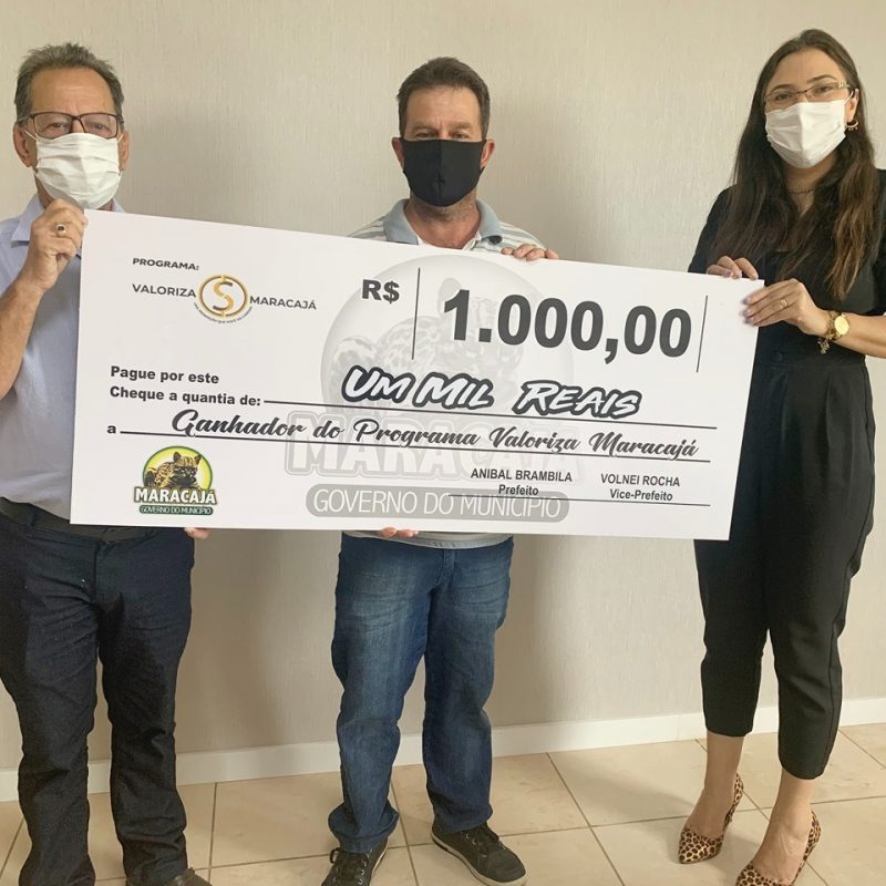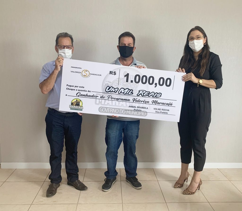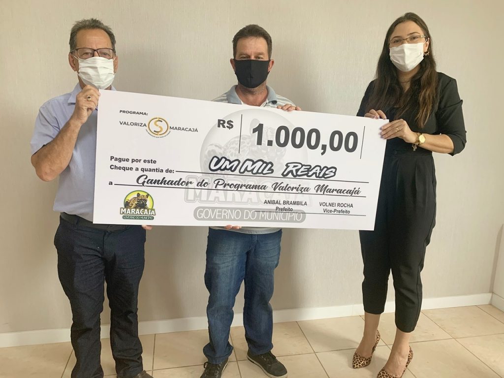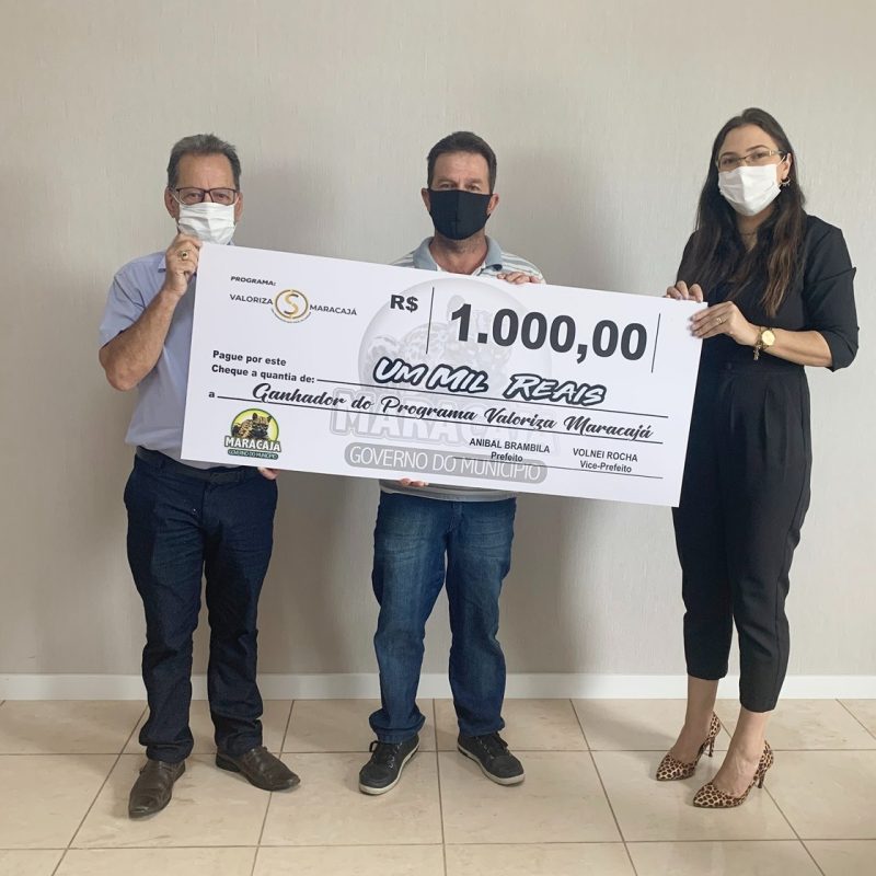 Foi entregue, na última sexta-feira, dia 15, o primeiro prêmio da campanha Valoriza Maracajá 2021, promovida pela prefeitura municipal. O ganhador foi o agricultor da localidade de Garajuva, Rogério Genuíno, que pela terceira vez, foi contemplado no programa. O primeiro prêmio que o agricultor ganhou foi no valor de mil reais, em fevereiro de 2019. No mesmo ano, ele foi o sortudo do último prêmio, onde levou para casa uma moto zero quilômetro. Desta vez, ele foi sorteado no dia 30 de setembro, em uma live no Facebook, pelo prefeito Anibal Brambila, acompanhado da secretária de Administração e Finanças, Edilane Rocha Nicoleite.