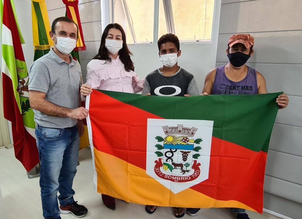 Adrian já é envolvido em lutas, tendo conquistas de competições na modalidade de taekwondô e pretende agora aproveitar a oportunidade e levar a bandeira de Sombrio, recebida das mãos da prefeita Gislaine, em seu gabinete, na tarde desta quinta-feira. O atleta esteve no gabinete acompanhado do pai, Joeci Cunha e do vereador Dion Elias.