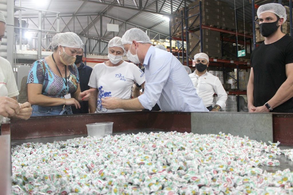 Com pouco tempo para os inúmeros atrativos, a primeira parada foi numa das indústrias responsáveis pela produção das tradicionais balas de banana, quase um símbolo de Jacinto Machado, comercializadas em todo o Brasil. “Queria demonstrar que, mais do que a exuberante e incontestável beleza natural, Jacinto Machado ainda tem muito mais a oferecer aos turistas”, explicou o secretário Luan, que pensa em incluir a visita à indústria em roteiros turísticos do município. Os visitantes puderam conhecer o passo a passo da fabricação dos diversos produtos a base de banana.