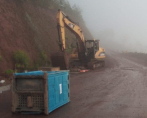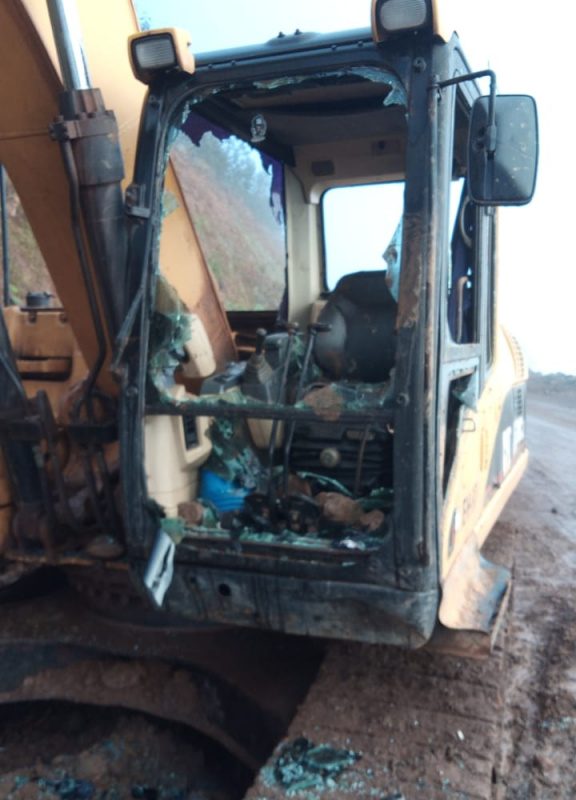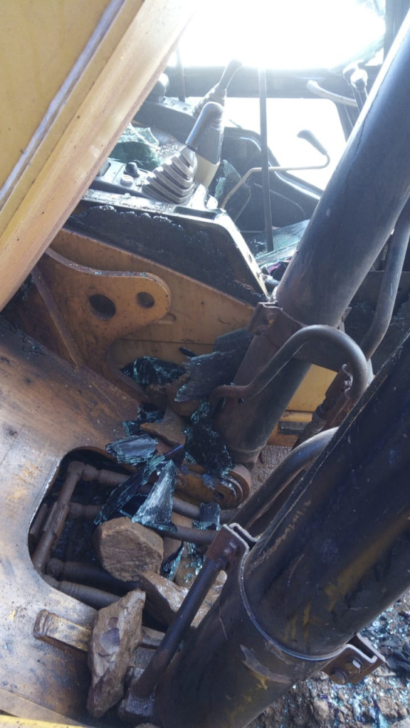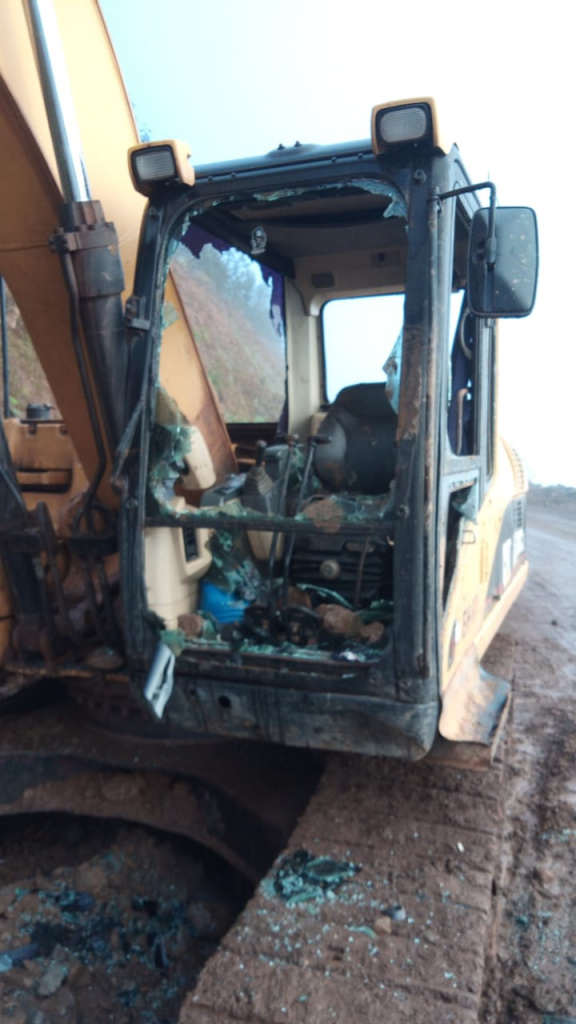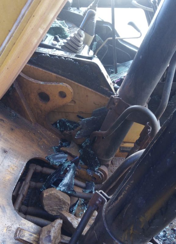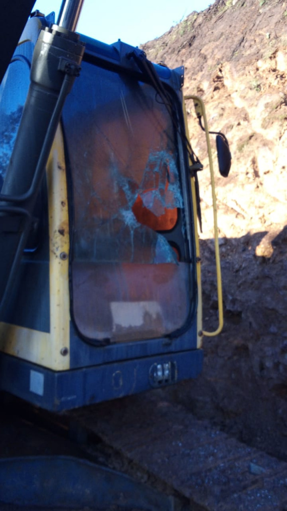 Uma das máquinas utilizadas na obra da Serra da Rocinha, em Timbé do Sul, foi encontrada na manhã desta segunda-feira, dia 1°, com sinais de depredação.