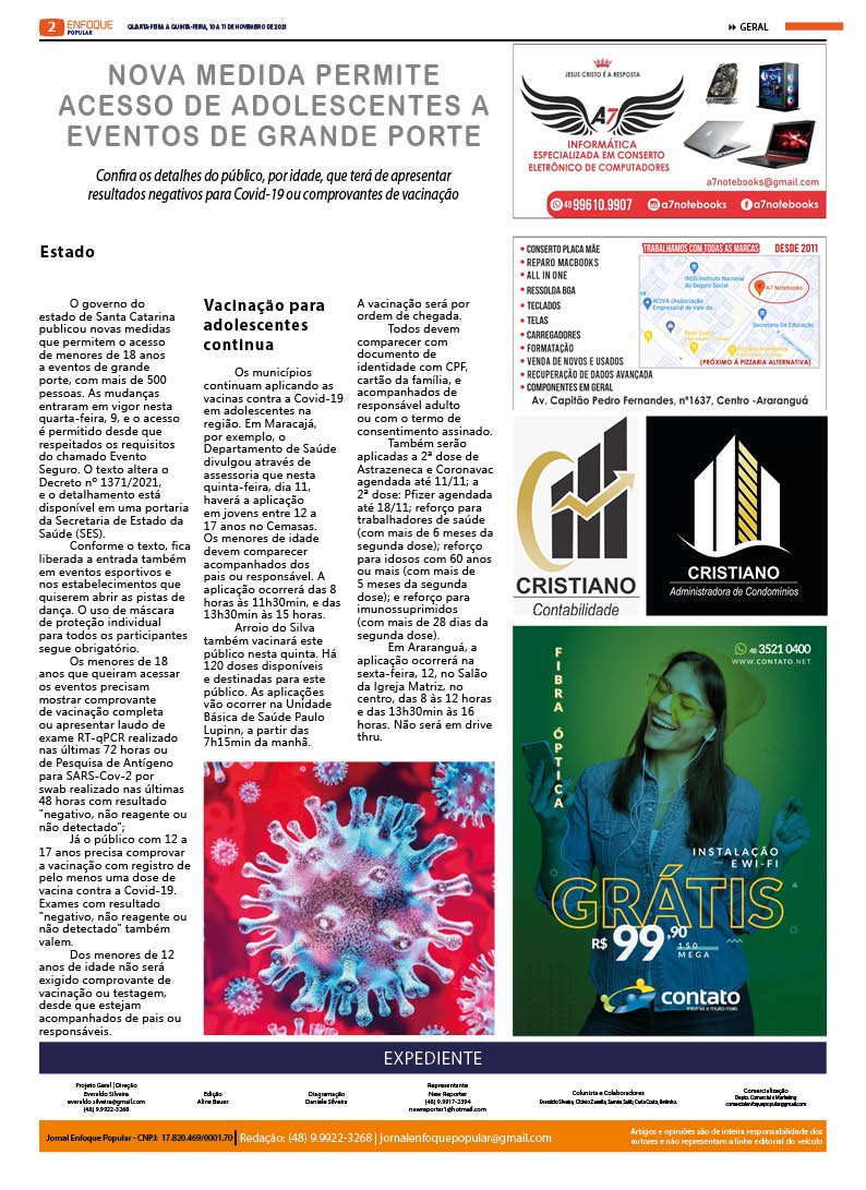 Edição 2557 – 10-11-2021 a 11-10-2021 | JORNAL ENFOQUE POPULAR