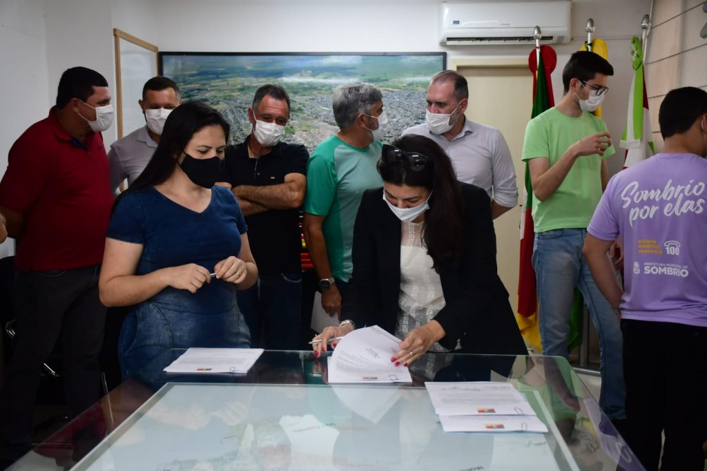 Em uma reunião na manhã desta terça-feira, dia 16, a prefeita de Sombrio, Gislaine Cunha, assinou as ordens de serviço para um pacote de pavimentação de cinco ruas no município. De acordo com ela, as obras refletem o esforço municipal para melhorar a qualidade de vida da população. “É pra isso que estamos aqui como gestores do município, para levarmos qualidade de vida e trabalharmos diariamente para retribuir em obras e ações tudo o que é gerado de recursos pelos nossos valorosos cidadãos”, pontuou.