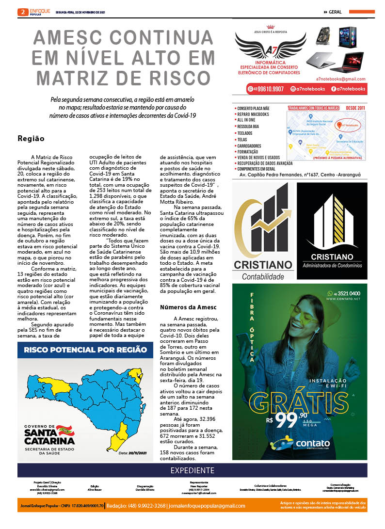 Edição 2562 – 22-11-2021 / Jornal Enfoque Popular