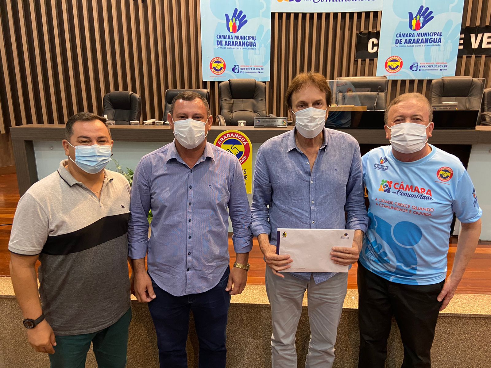 Três assuntos merecem destaque na sessão da Câmara de Vereadores de Balneário Arroio do Silva: 1) a queixa do presidente Vanderlei “Lei do Mar Azul” (PSL) sobre a falta de retorno de secretários às ligações de vereadores; 2) a aprovação da Lei Orçamentária Anual para 2022 no valor de R$ 52,5 milhões; 3) e a aprovação do Decreto Legislativo dos 5 vereadores do PSL para tornar o governador Carlos Moisés da Silva (sem partido) com 8 votos dos presentes (ausente apenas Márcio Macan, do PDT). Uma data deverá ser marcada para a entrega do título.