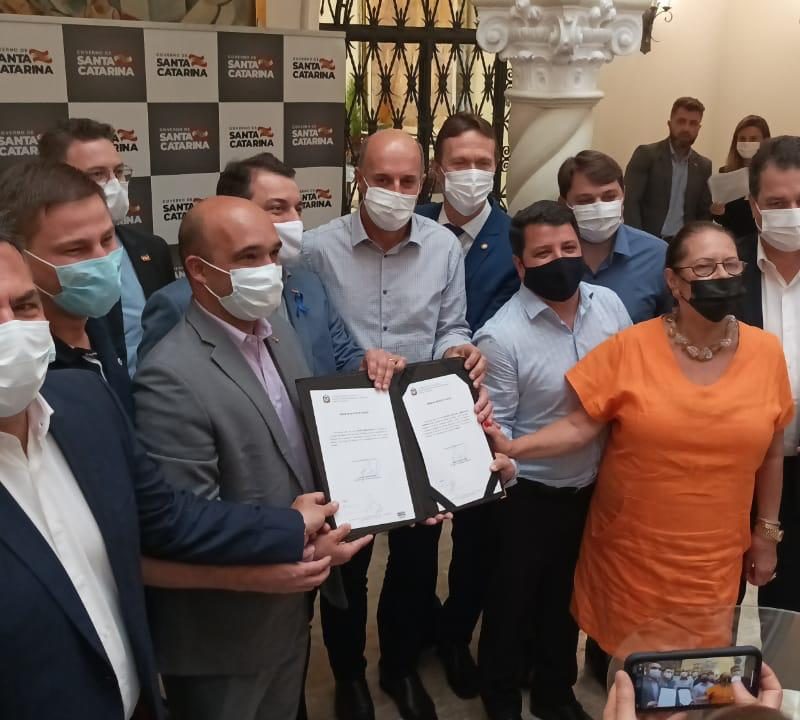 Durante a assinatura, Moisés comentou a realização da obra. “Em Santa Catarina estas obras estão ocorrendo em todas as regiões, e inclusive em rodovias federais. São obras para os catarinenses”, declarou.