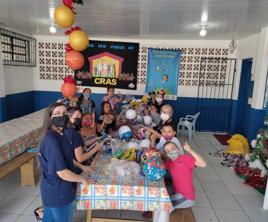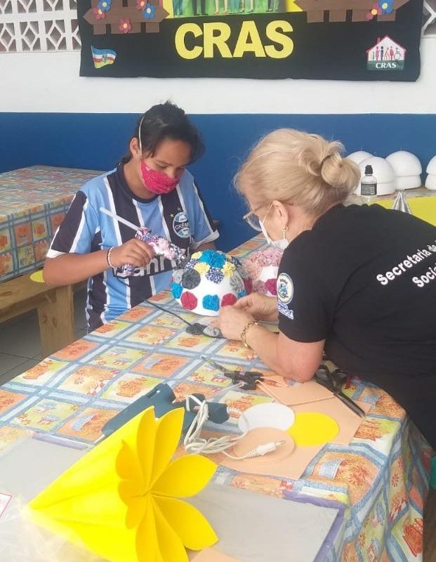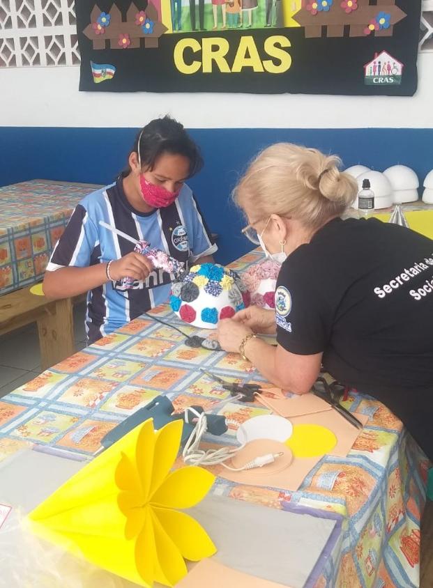 Os encontros das crianças e jovens do SCFV (Serviço de Convivência e Fortalecimento de Vínculos) da Secretaria de Assistência Social e Habitação de Araranguá, estão sendo mais produtivas nesta época de preparativos para o Natal. Através do Cras, e com o auxílio da artesã e chefe de expediente do Centro de Convivência do Idoso, Goreti Wachholz, enfeites natalinos estão sendo confeccionados para decorar casas e espaços da Secretaria.
