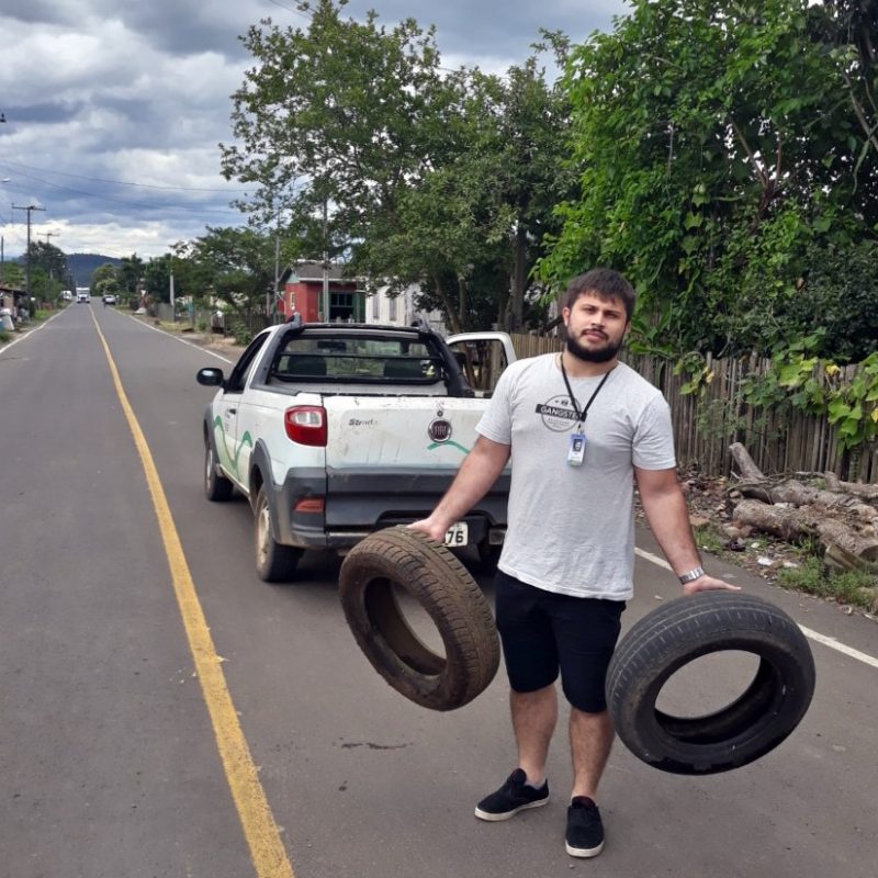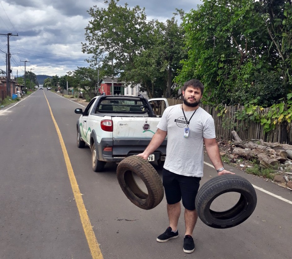 Numa parceria com a empresa Reciclanip, mais de cem pneus foram coletados em residências do município, além do recolhimento realizado nas borracharias.
