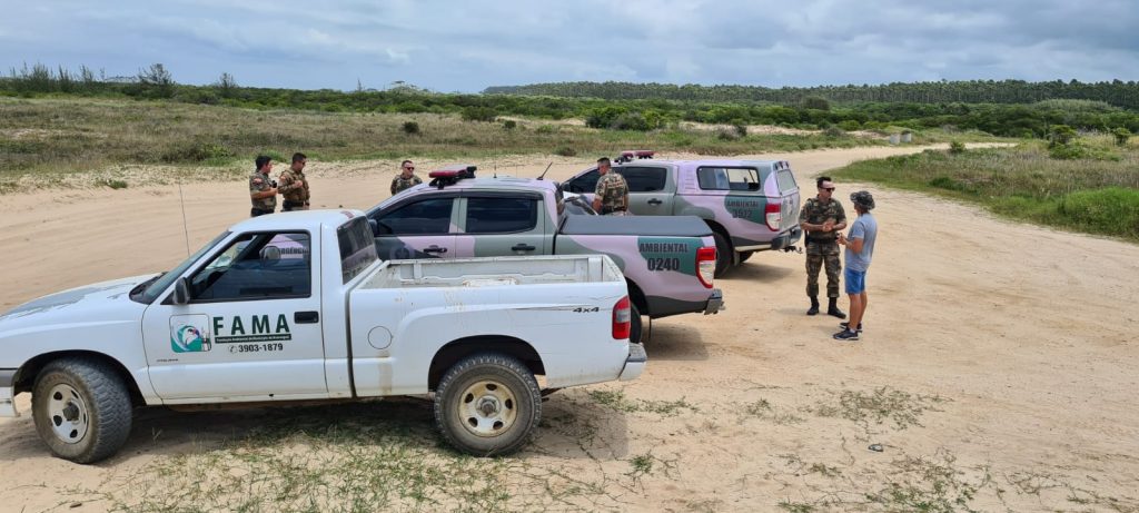 Fizeram parte da operação 4 homens da Polícia Militar Ambiental com duas viaturas, 2 policiais militares com uma viatura, além de representantes da Fundação Ambiental – Fama. Essas ações integradas de fiscalização das três instituições serão realizadas com mais frequência durante este verão.