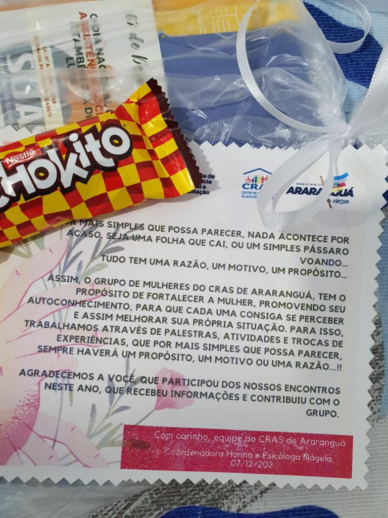 A Secretaria de Assistência Social e Habitação de Araranguá, através do Cras (Centro de Referência da Assistência Social), encerrou as atividades nesta terça-feira, dia 7, com o Grupo de Mulheres acompanhadas pelo Paif (Programa de Atenção Integral à Família).