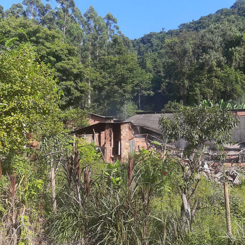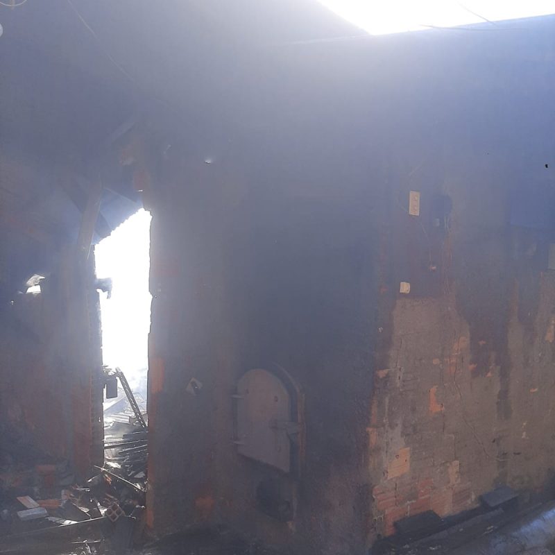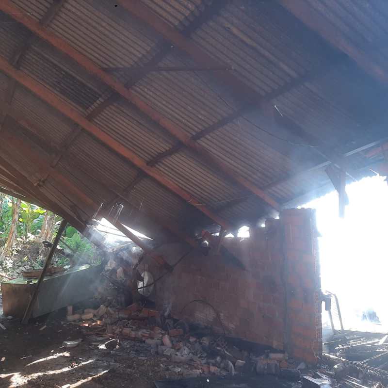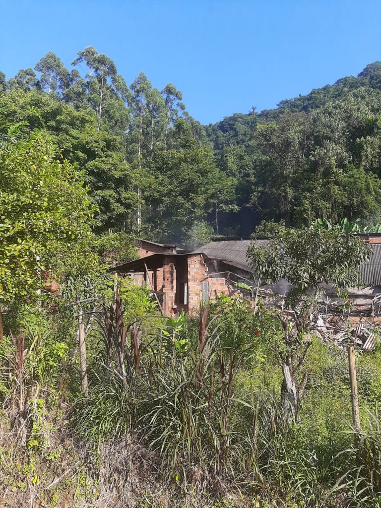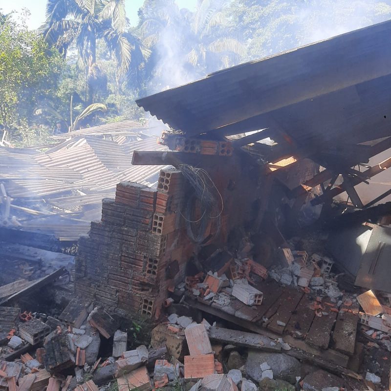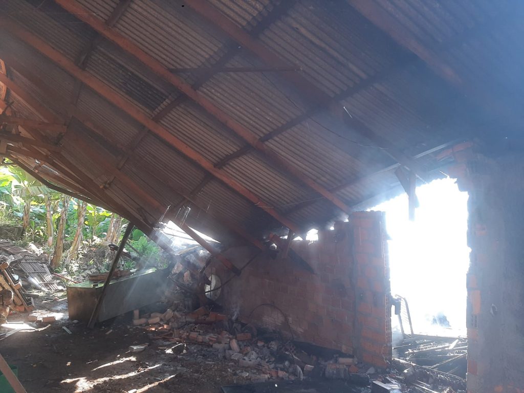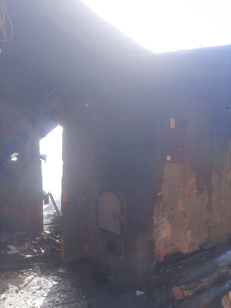Uma estufa de secagem de fumo ficou destruída após um incêndio na manhã de terça-feira, dia 21, em Praia Grande.