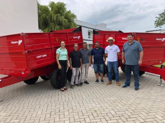 A entrega das carretas aconteceu na tarde desta terça-feira, dia 04, com a presença do prefeito Anibal Brambila, diretor de Agricultura, Jucemar Gonçalves, secretária de Administração e Finanças, Edilane Nicoleite, diretor de Educação, Daniel de Souza, presidente do Legislativo, Matias José Matias, e o representante da empresa vencedora do pregão, Ceres Agropecuária, de Jacinto Machado.