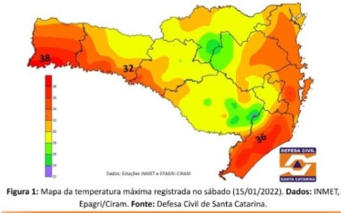 A onda de calor trouxe altas temperaturas à região. A Defesa Civil divulgou um boletim apontando que, na região, o município com maior temperatura foi Jacinto Machado, onde foram registrados 38,2°C. Em Meleiro, o calor chegou a 37°C.