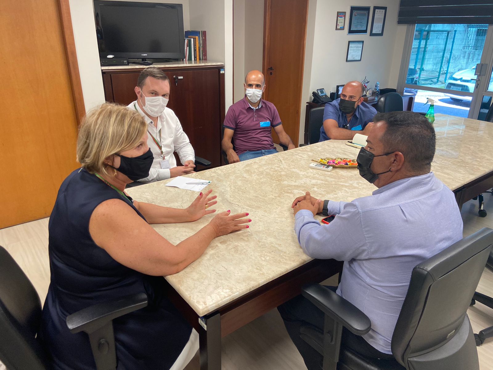 Esmeraldino foi recebido pelo prefeito Kekinha dos Santos (PSDB), vice prefeito Jonatã Coelho (PSL) e Cíntia Brígido, secretária de Administração e Finanças, um dia após o adiamento da agenda, quando o secretário precisou se deslocar de helicóptero até Florianópolis a chamado do governador.