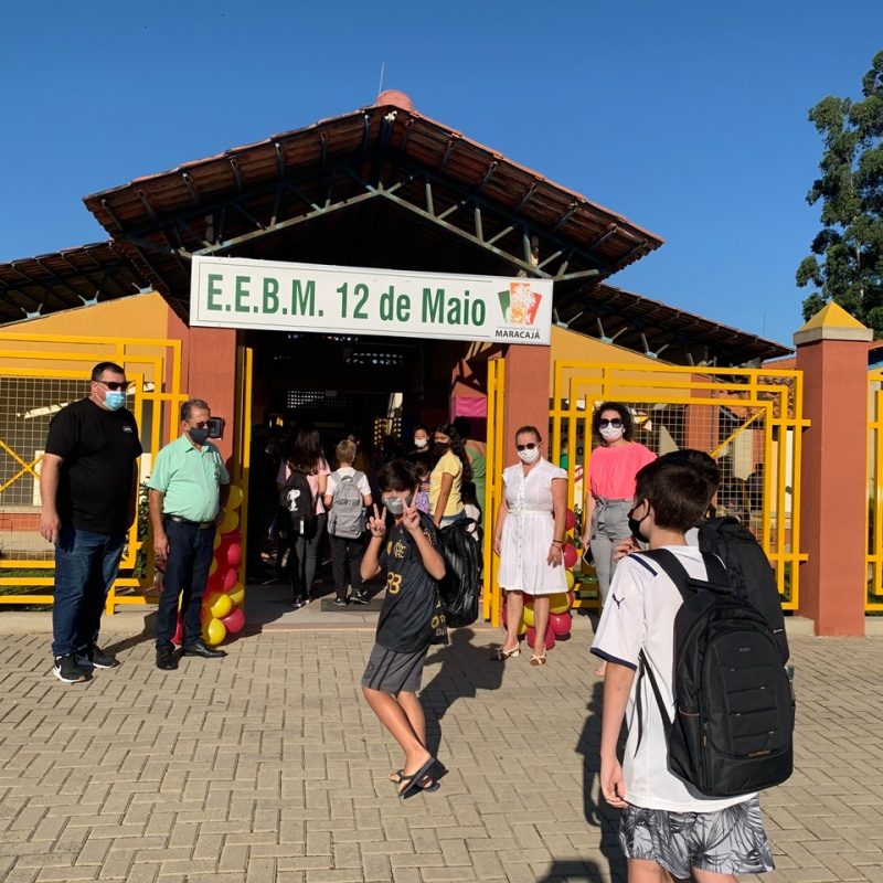 No Centro de Educação Infantil Margareth Maria Tomasi Rocha e na Escola de Educação Básica Municipal Maria Libânia Machado, os alunos foram recepcionados pela direção, equipe gestora e professores.