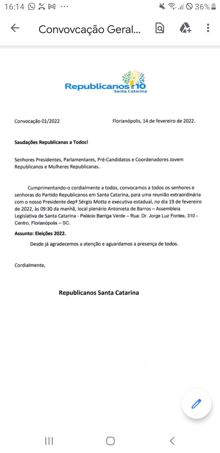 No mesmo dia das prévias do MDB, dia 19 de Fevereiro, às 9h30min, na Assembleia Legislativa, tem encontro marcado pelo deputado estadual Bispo Sérgio Motta (Republicanos) com as lideranças do partido em Santa Catarina. Prefeitos, presidentes, vereadores e pré-candidatos devem debater o caminho do partido nas próximas eleições.