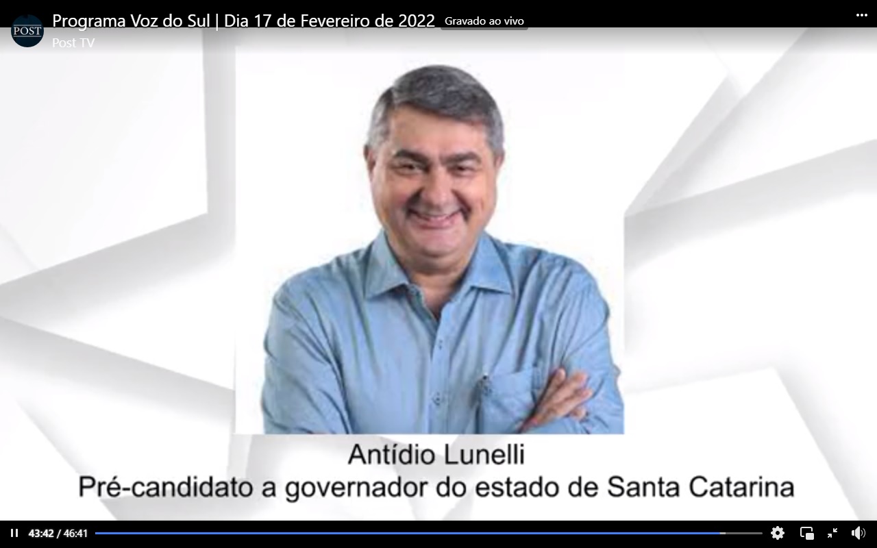 “Prezados emedebistas: Agradeço humildemente o gesto em busca de unidade feito pelo senador Dário Berger e pelo deputado estadual Valdir Cobalchini, que desistiram de disputar as prévias marcadas para o próximo sábado. Ter meu nome homologado como pré-candidato do MDB ao governo do Estado é motivo de muito orgulho para mim e de muita responsabilidade. Estava disposto e entusiasmado para enfrentar as prévias e depois acatar o resultado, mas vejo com alegria poder ter a chance de ajudar a pacificar o partido com a certeza de que o MDB é grande e sai ainda maior depois de toda movimentação das nossas bases que desde o ano passado têm dado provas irrefutáveis de que quer ver o nosso partido protagonista na construção de um projeto que torne Santa Catarina ainda melhor, com serviços mais eficientes, melhor infraestrutura e com uma gestão aos moldes das melhores empresas do Estado. Uma gestão que mire o futuro com planejamento e seriedade e que diminua o peso que recai em cima dos trabalhadores e empreendedores. Sabiamente se diz que sonho que se sonha só é apenas um sonho. Mas o sonho que se sonha junto é realidade. E não tenho dúvida de que juntos temos capacidade para apresentar a melhor proposta para o eleitor nas eleições de outubro, pois temos um quadro altamente qualificado. A população catarinense enfrenta diversos problemas, será preciso uma gestão com coragem e determinação para que tenhamos um futuro melhor e com sustentabilidade. Na disputa pela indicação da nossa base, muitos de nós se excederam em algum momento, processo natural dentro de uma prévia. Porém, ressalto que da minha parte existe total disposição de diálogo e construção. Mais uma vez agradeço pelo gesto e pela homologação do meu nome como candidato do MDB e reafirmo minha dedicação total para liderar esse que é o maior partido de Santa Catarina rumo às eleições. Vamos com fé e perseverança! Vamos à luta com a força do 15! Antídio Lunelli. Santa Catarina, 16 de fevereiro de 2022”.