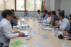 O secretário de Estado da Fazenda (SEF/SC), Paulo Eli, acompanhado do chefe da Casa Civil (CC), Eron Giordani e do subchefe da CC, Juliano Chiodelli, coordenou nesta quarta-feira, 2, mais uma reunião com representantes de 11 cidades para debater e analisar os projetos que serão contemplados pelo Plano 1000. Nesta rodada, participaram Araranguá, São José, Timbó, Imbituba, Canoinhas, Itapoá, Gaspar, Orleans, Içara, Urussanga e São Joaquim. Juntos, esses municípios receberão R$ 687 milhões do programa.